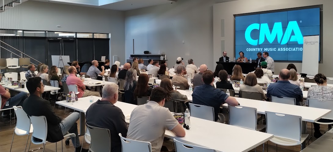 On October 1, 2025, the Copyright Society of the South welcomed Alex Grout, David Schneider, and Reid Alan Waltz, who provided a comprehensive discussion on the complex and evolving world of public performance copyright licensing. Society board director Kent Draughon monitored the conversation. The CLE luncheon event was held for Society members and their guests at the Country Music Association event room in Nashville, Tennessee.